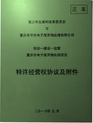 從2010年開始,公司就是重慶市政府公開招投標確定的重慶市電子廢棄物處理特許經(jīng)營權(quán)企業(yè),在重慶市“一小時經(jīng)濟圈”范圍內(nèi)23個區(qū)縣,開展電子廢棄物綜合回收機處理處置業(yè)務。